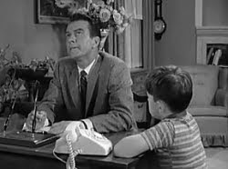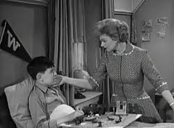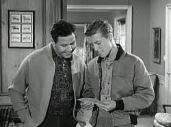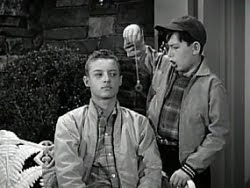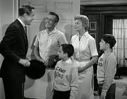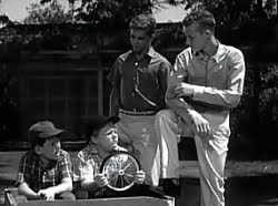 219. "Lumpy's Scholarship" (March 7, 1963) -- Incredibly, Lumpy Rutherford receives a football scholarship, but his grades just might keep him from getting it. .... FRED [mocking his son]: "No, you're not getting the scholarship." .... Fred is not exactly the most tactful of fathers, is he? He could use a few lessons from Ward. ~grin~