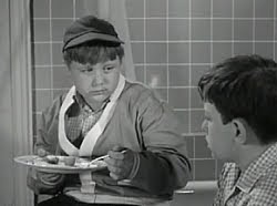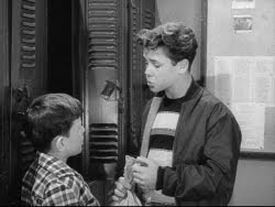 190. "One Of The Boys" (May 26, 1962) -- Wally and Eddie are invited to join a snobbish social club at their high school. They end up not joining, which is a good thing, because I'd hate for Wally to be part of a club that includes members who think that going to the bowling alley for lunch is a major improvement over the food that can be found in the school cafeteria. ~LOL~ .... EDDIE: "This is the best thing that's ever happened to us in our entire career as teenagers!"