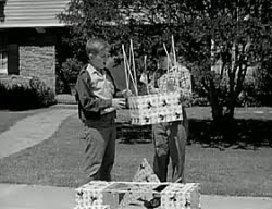 - U.S. Treasury Film -- This bonus is sort of a "mini" episode of Leave It To Beaver. It was produced during the third season of the series, in cooperation with the United States Treasury Department. Beaver learns a valuable lesson about saving money in this rarely-seen 15-minute advertisement for U.S. Savings Bonds. This program hasn't been restored or remastered like the other episodes in this boxed set, so the video quality is a little rough around the edges. It also doesn't include a laugh track, and the absence of such a track here serves to emphasize the importance and necessity of the "canned" laughs that we hear throughout all of the regular episodes in this series. Because after hearing an episode without any laughs at all, it becomes painfully obvious that those laughs coming from a "canned" audience are definitely better than hearing dead silence instead.