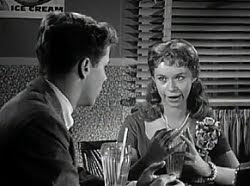 196. "Wally's Dinner Date" (September 27, 1962) -- This is an episode I find myself watching over and over again. I just love it. Wally discovers that he's a little short in the cash department after agreeing to take Julie Foster to a fancy restaurant for dinner. (Julie is played by the very cute Cheryl Holdridge, who also played the part of another one of Wally's female interests earlier in the series, Gloria Cusick.) The price of a bowl of soup at "The White Fox" (80 cents) has Wally practically hitting the ceiling. Luckily, though, Wally has a very understanding dad, who is willing to advance Wally fifteen dollars. .... EDDIE: "No girl in the world is going to settle for a liquid diet."