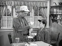 219. "Lumpy's Scholarship" (March 7, 1963) -- Incredibly, Lumpy Rutherford receives a football scholarship, but his grades just might keep him from getting it. .... FRED [mocking his son]: "No, you're not getting the scholarship." .... Fred is not exactly the most tactful of fathers, is he? He could use a few lessons from Ward. ~grin~